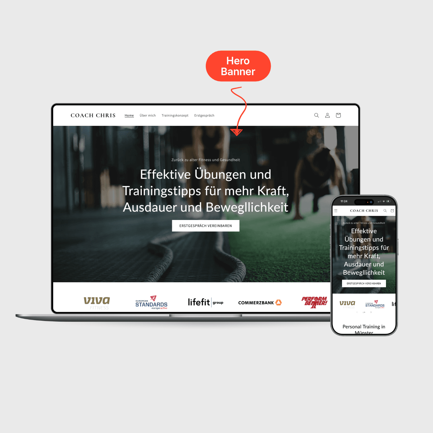 Regionale Sichtbarkeit: Das Design wurde gezielt darauf ausgerichtet, die Reichweite in Münster und Umgebung zu erhöhen und Chris als die erste Adresse für Personal Training zu etablieren.