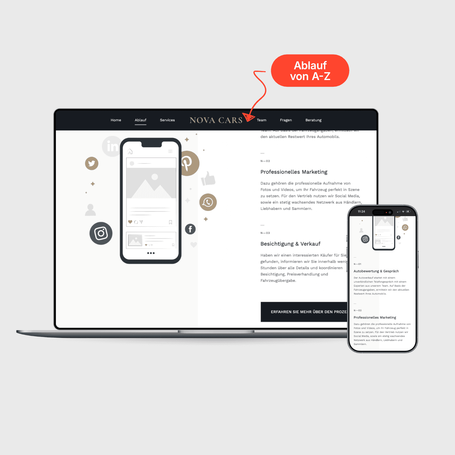 Erhöhte Markenautorität: Das konsistente Design über Website und Social Media hinweg festigte den Status als vertrauenswürdiger Premium-Partner.